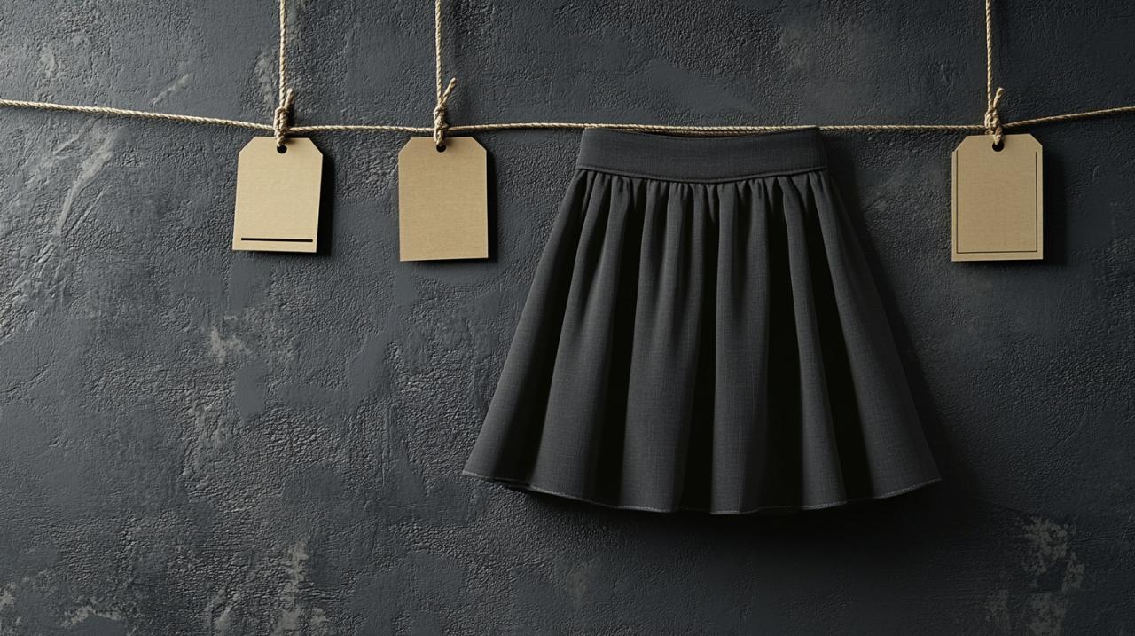 Collection de jupes : les minijupes en simili cuir avec étiquettes vêtements disponibles sur Toukimarque